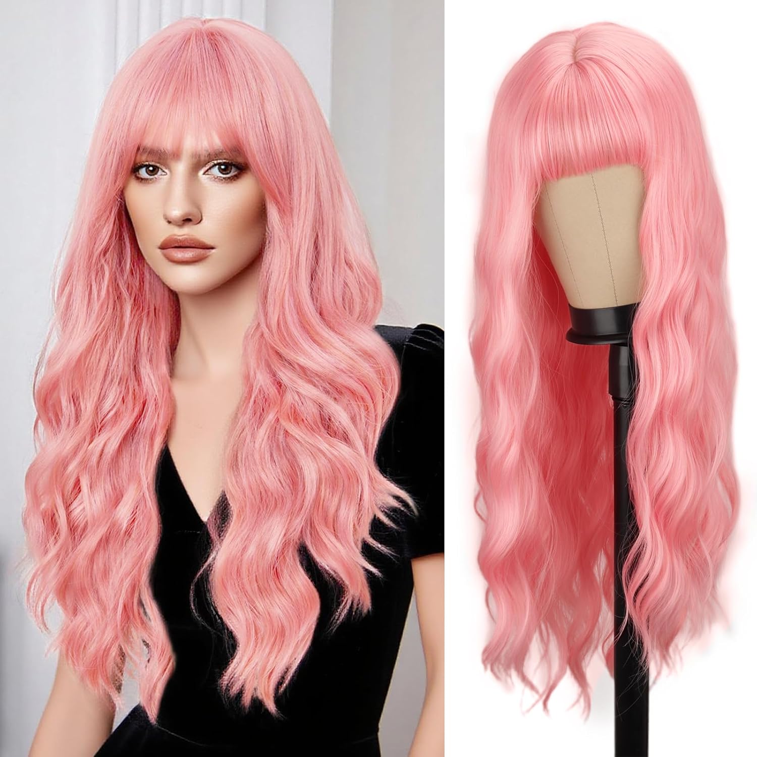 Suitable Occasions: This long black curly wig with bangs is suitable for various occasions, whether it is daily wear, parties, weddings, Halloween or theme events, this stylish and charming long black curly wig can add a touch of elegance and fun to your look. Wearing this long black curly wig with bangs, you will be the focus of any party.